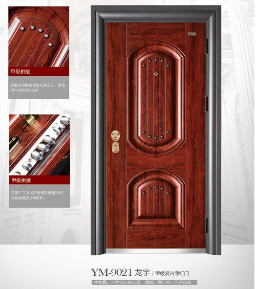 YM-9021双色复古泡钉门,古城门坚守固若金汤的历史使命。